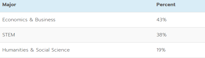 Breakdown of undergraduate majors (137 domestic universities and 155 international universities)