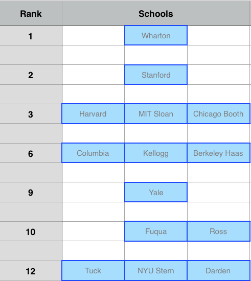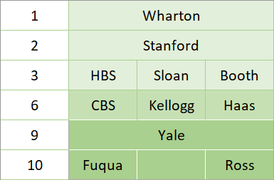 - I don't understand why Yale is not ranked the same as Ross and Fuqua. It would look so much cleaner 1, 2, 3, 6, 9....