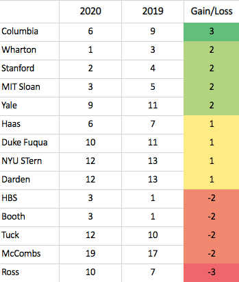 Narenn for coming up with the graphics for the Top 10. I built on top top of it. As you can see, it would make a better picture to rank Yale, Ross, and Fuqua on the same line.