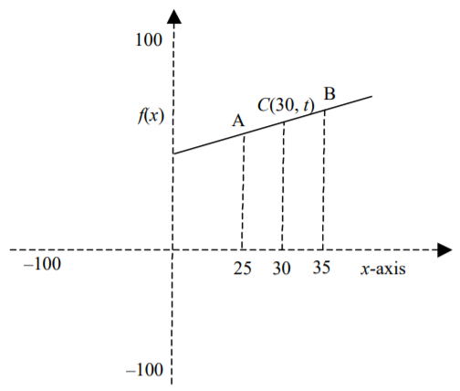 Slope of BC = \(\frac{(b-t)}{(35 – 30)}\) = \(\frac{(b-t)}{5}\).