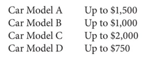 | The maximum rebate amount given to eligible Business Partners who purchase Car Model A | ||