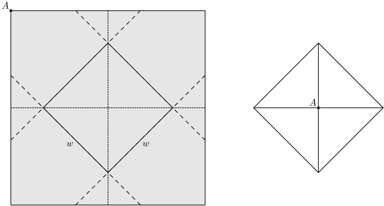The diagonal of the square = w√2. Therefore, HK = ½ * w√2 = \(\frac{w}{√2}\)