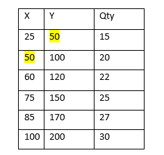 Cost of first 10 units from Y = 150 + 15*10 = 300