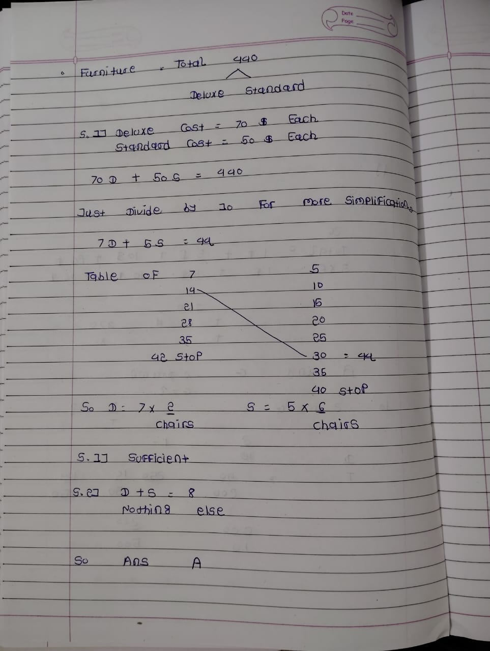 Official Solution: A furniture store spent $440 to purchase two types of chairs: deluxe and standard. How many standard chairs did the store purchase? This is a classic C-trap question. C-trap questions are the ones where the statements together clearly seem sufficient, but in fact, one statement alone may already be enough. When such situations appear, we should proceed carefully. In this question, it is clear that when we combine the statements, we have all the information there might be about the question, so the combination obviously is sufficient. However, we must be careful not to overlook that either statement (or both) could individually also be sufficient.