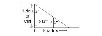 Statement 2: The cliff's shadow is 10 times as long as the staff's shadow