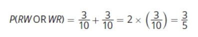 This event is mutually exclusive from picking a red marble followed by a white marble. Thus, the total probability of picking one red