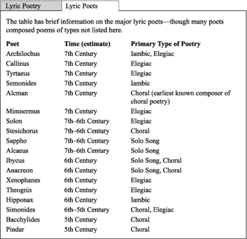 | A poem referring to Greece’s mythical past could not have been composed by any of the major lyric poets. | ||