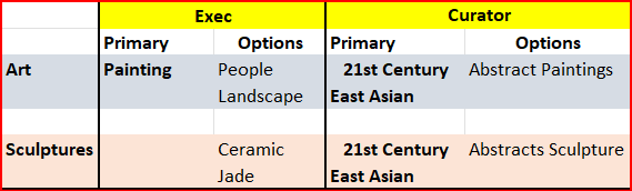 We don't need to worry about the option stating if the arts are East Asian or not as it is given in the question itself that all the options are East Asian Arts. So Curator's requirement becomes only