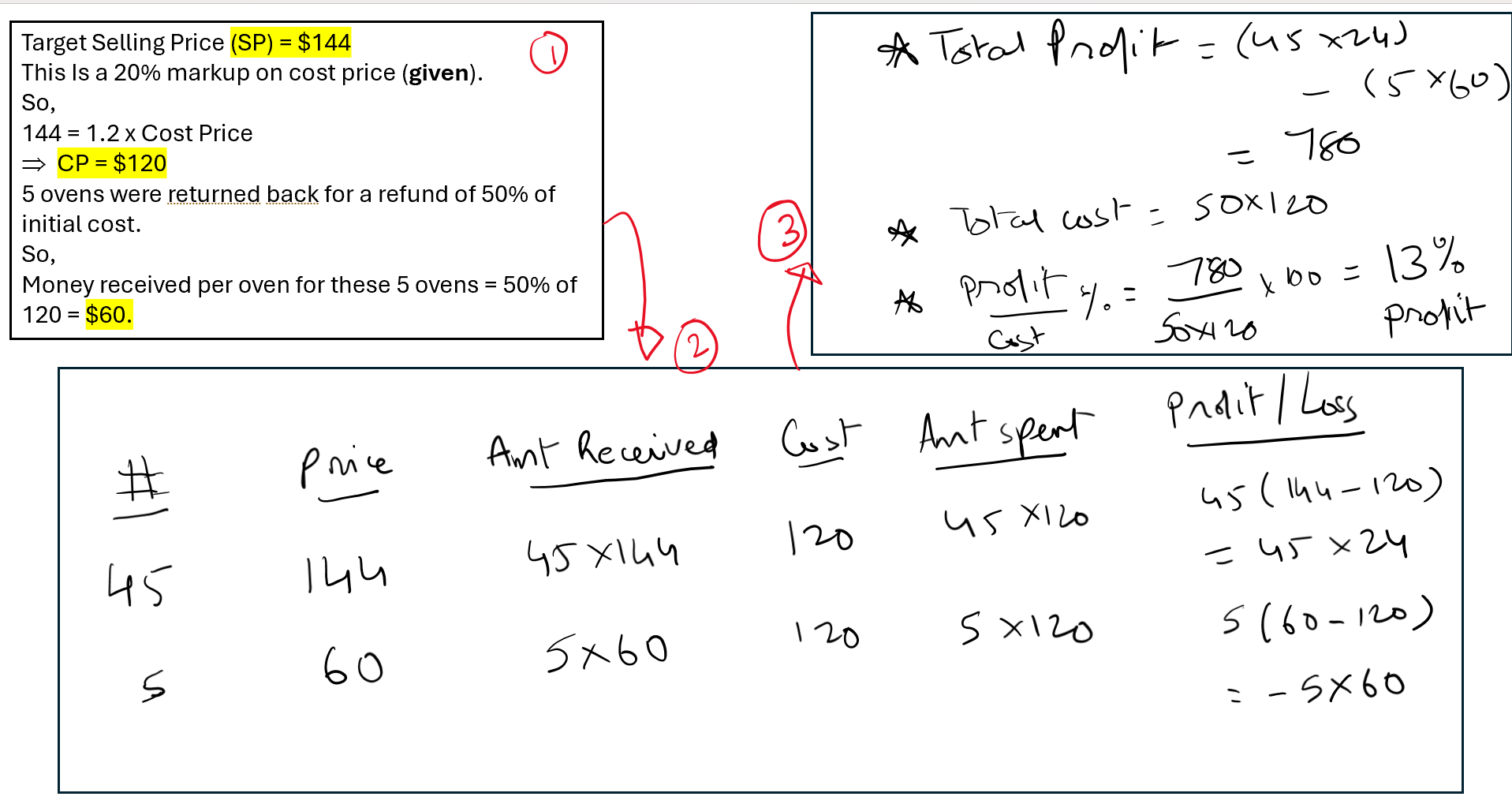 \(($6,480-$5,700)=$780\)Profit as a percent of INITIAL cost of 50?