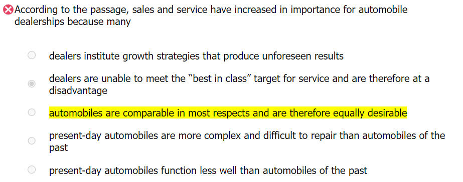 Q1: According to the passage, sales and service have increased in importance for automobile dealerships because many