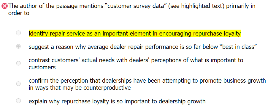 Q2: The author of the passage mentions "customer survey data" (see highlighted text) primarily in order to