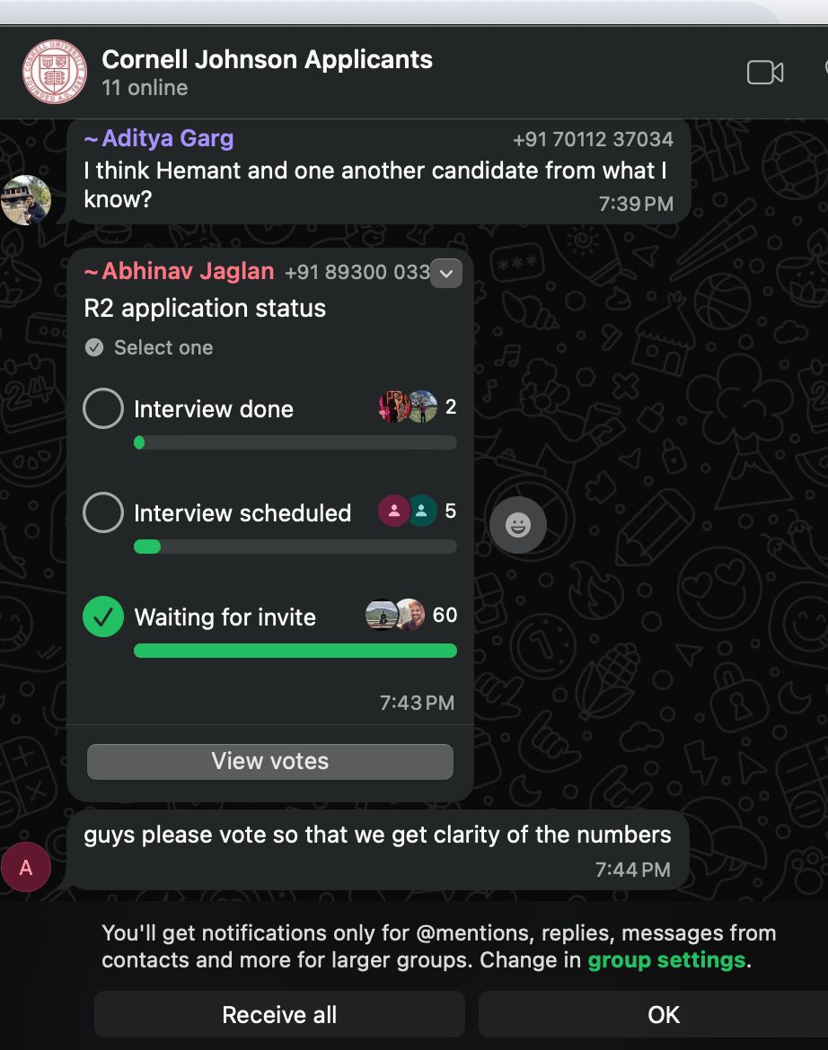 Any international student here admitted to Cornell 1 year tech mba? looking to connect. Thanks.