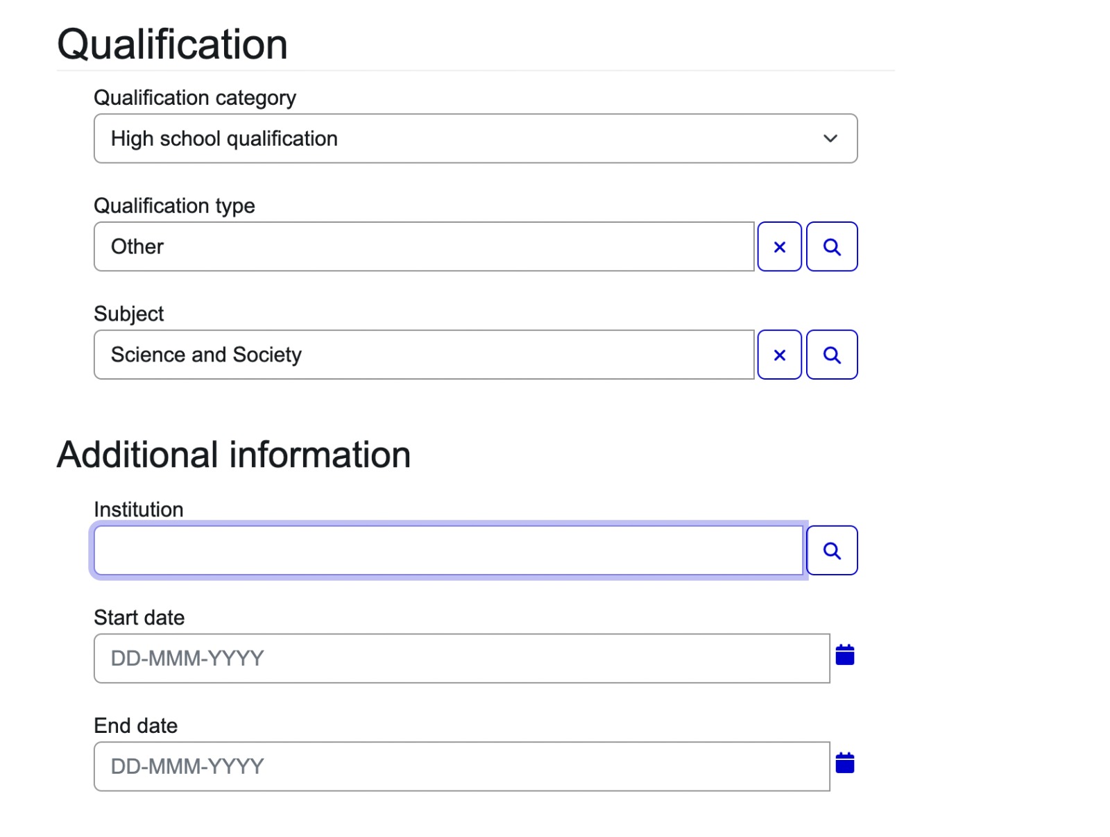 Hey folks - So my high school institution isn't showing up. What have you done in such a case? Leave it blank?