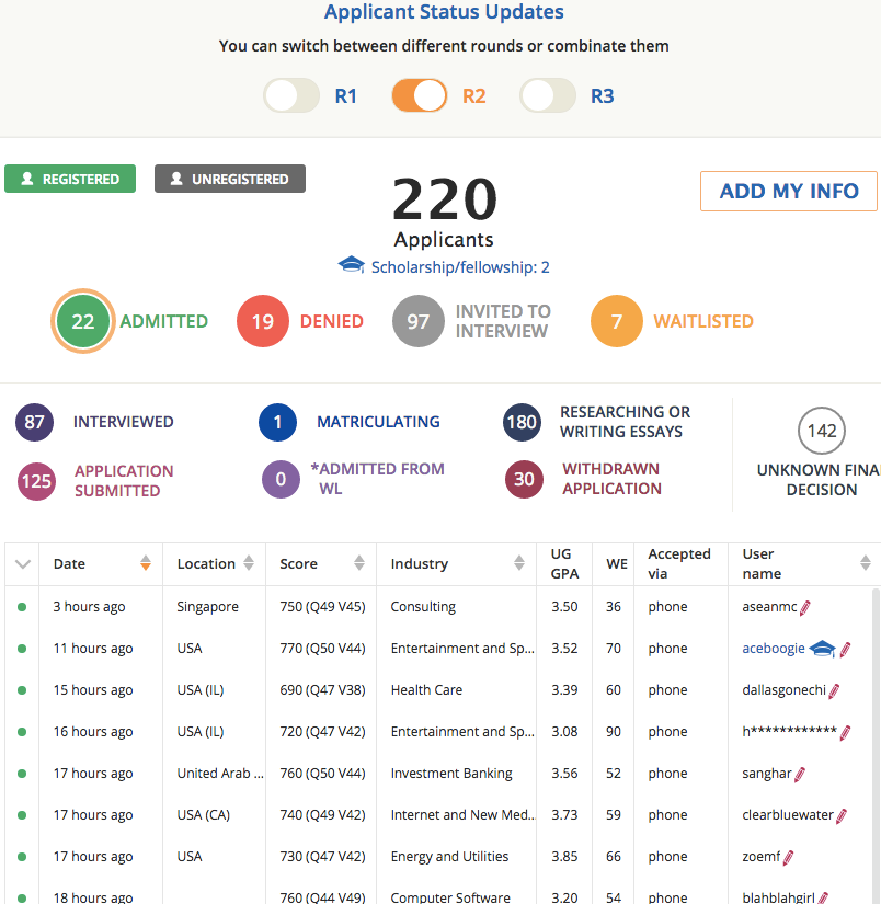 Congrats to all admits again! Here is R2 admission summary based on stats submitted on Decision Tracker.