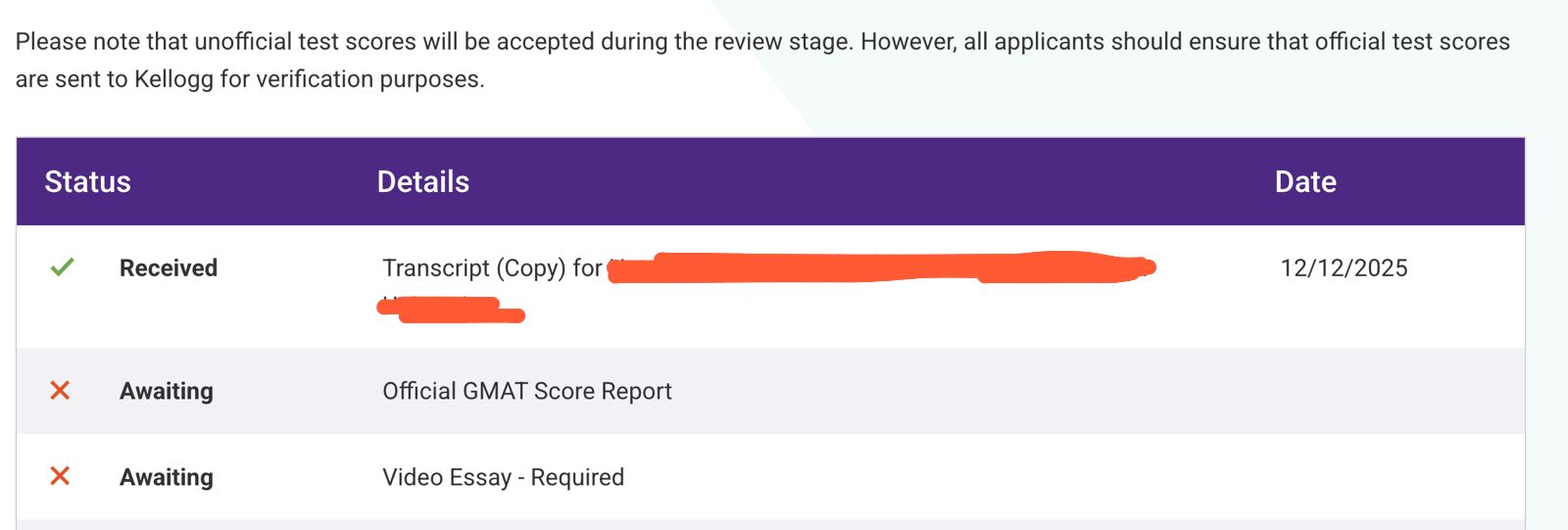 Clarification regarding submitting unofficial test scores