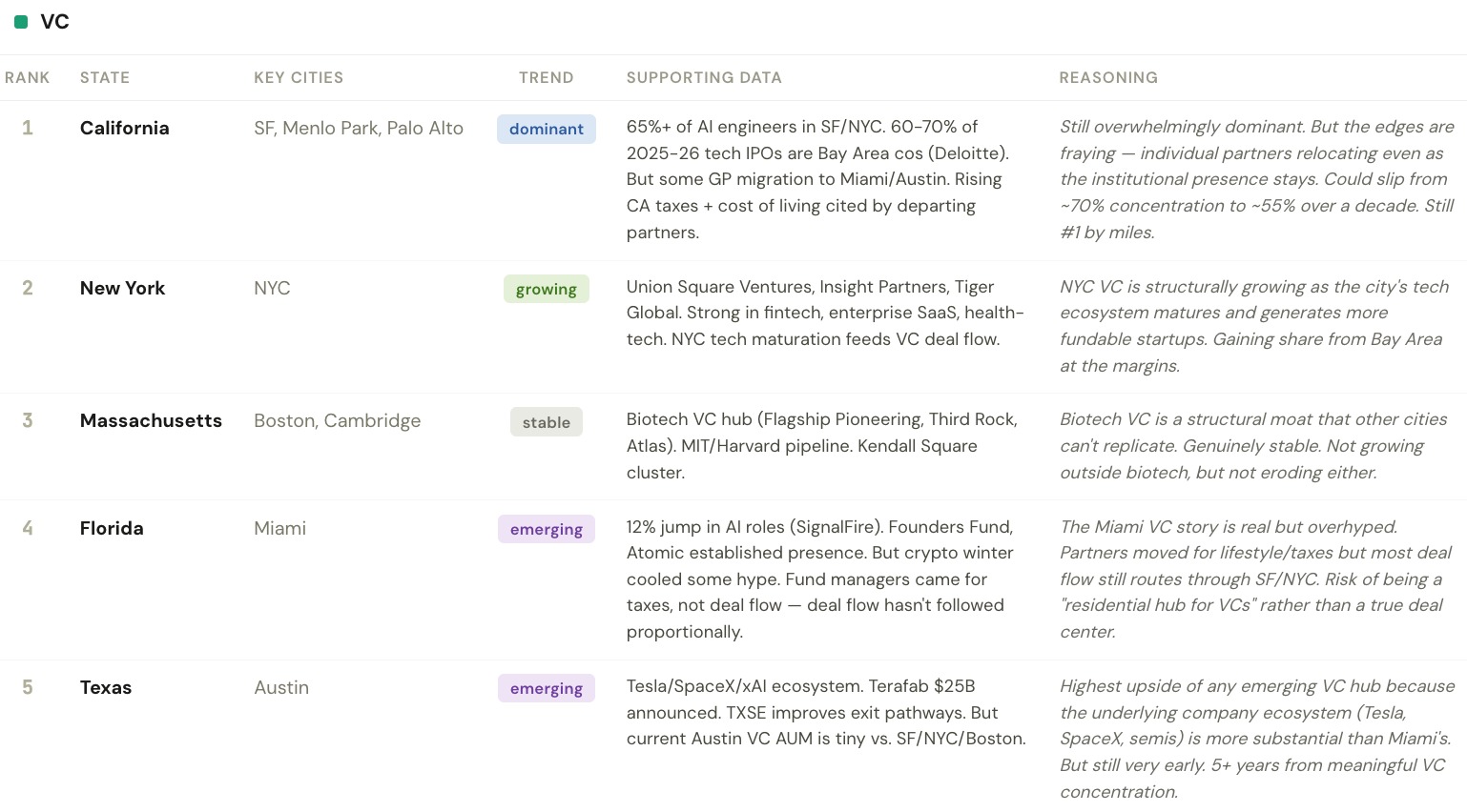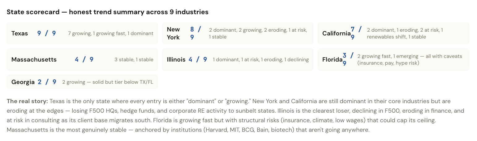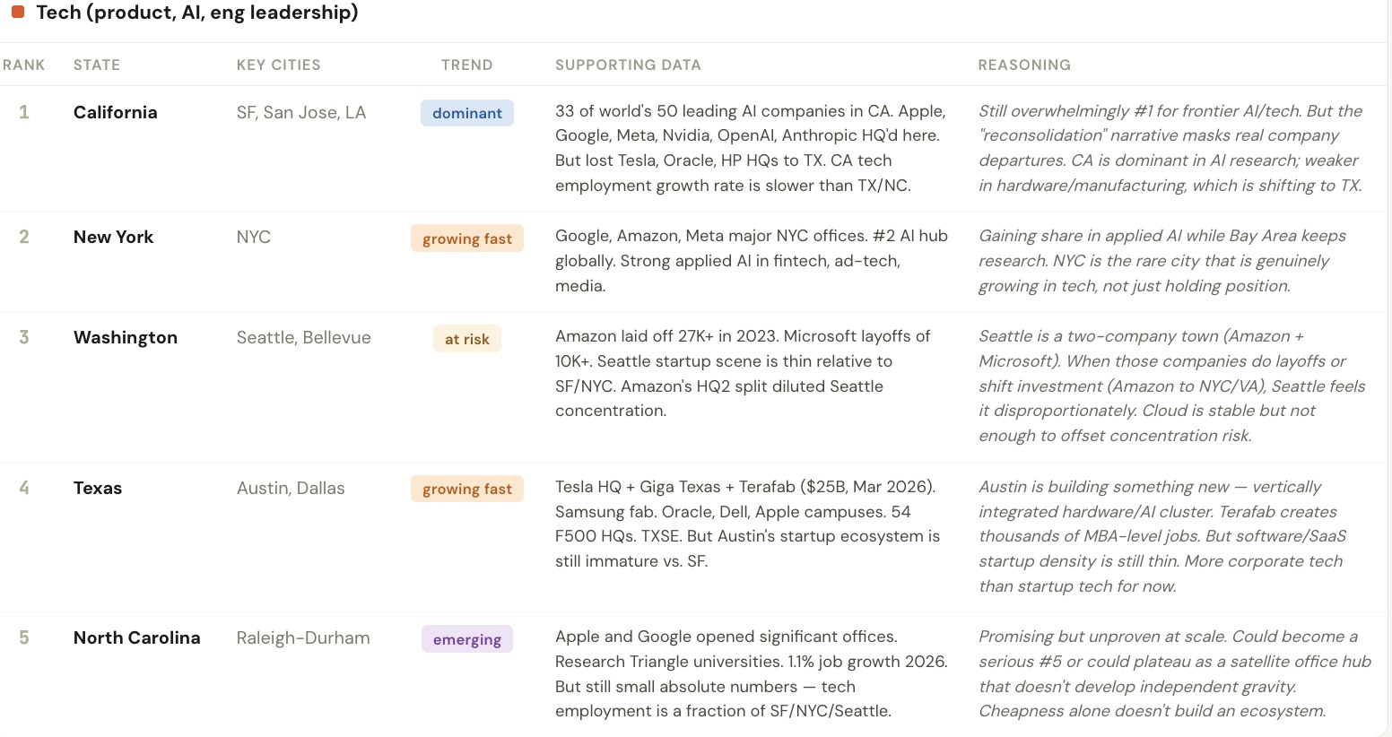 I ran Claude to see how economic/job creation centers are moving in USA..... Data from BLS, Fortune, PitchBook, Carta, SignalFire, and industry reports (2025–2026).