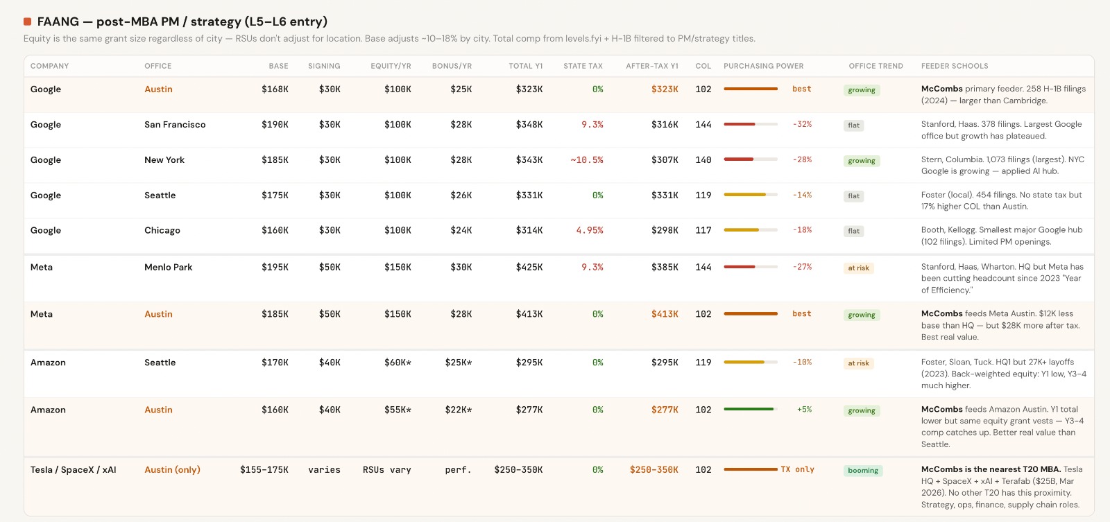 FAANG H1B Filings. FAANG equity grants don't adjust by city — you get the same RSUs in Austin as in SF.