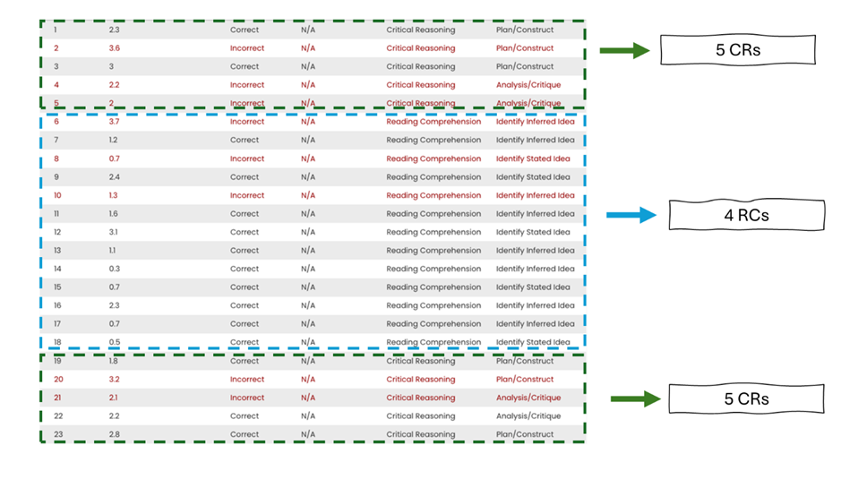Your timing strategy expects a mix of 2 minutes for CR questions and 6-7 minutes for RC passages. Now imagine hitting a 20–25-minute block of just RC passages mid-test. Even the most well-practiced timing strategy gets thrown off balance.The Confidence Challenge: