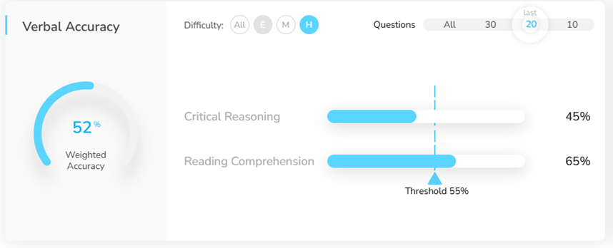 Here's a trap many students fall into: "My overall verbal accuracy is 70%, I'm good to go!" But dig deeper:- What if your Strengthen questions are only at 55%?