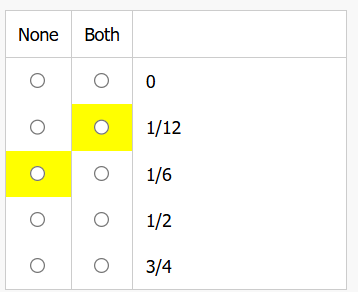For 1st Prompt:P(Neither) = 1 - P(Either) = 1 - { 9/12 + 2/12 - 1/12 } = 1 - 10/12 = 2/12