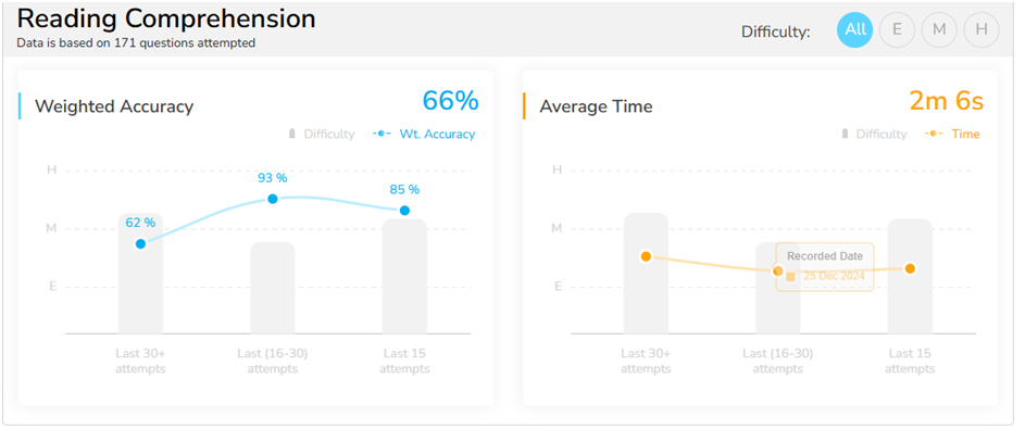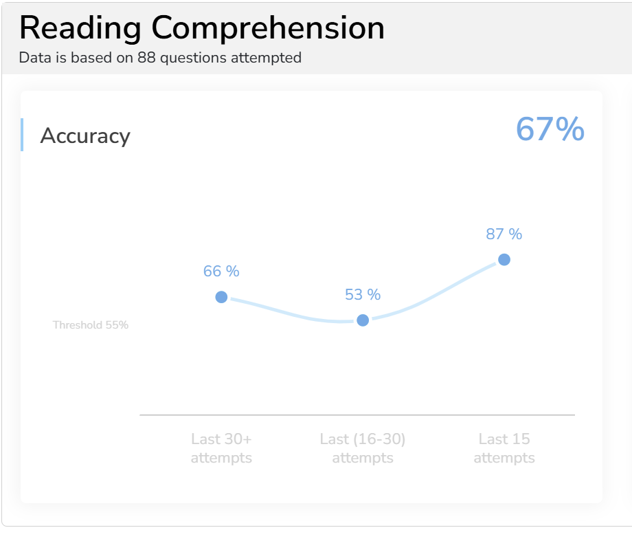 The platform's data analytics helped me track my progress, showing clear improvement as I moved from one level to the next. This systematic approach, combined with focused practice on weak areas, helped me achieve an 11-point improvement from Q76 to Q87 - something I hadn't imagined possible when I started.