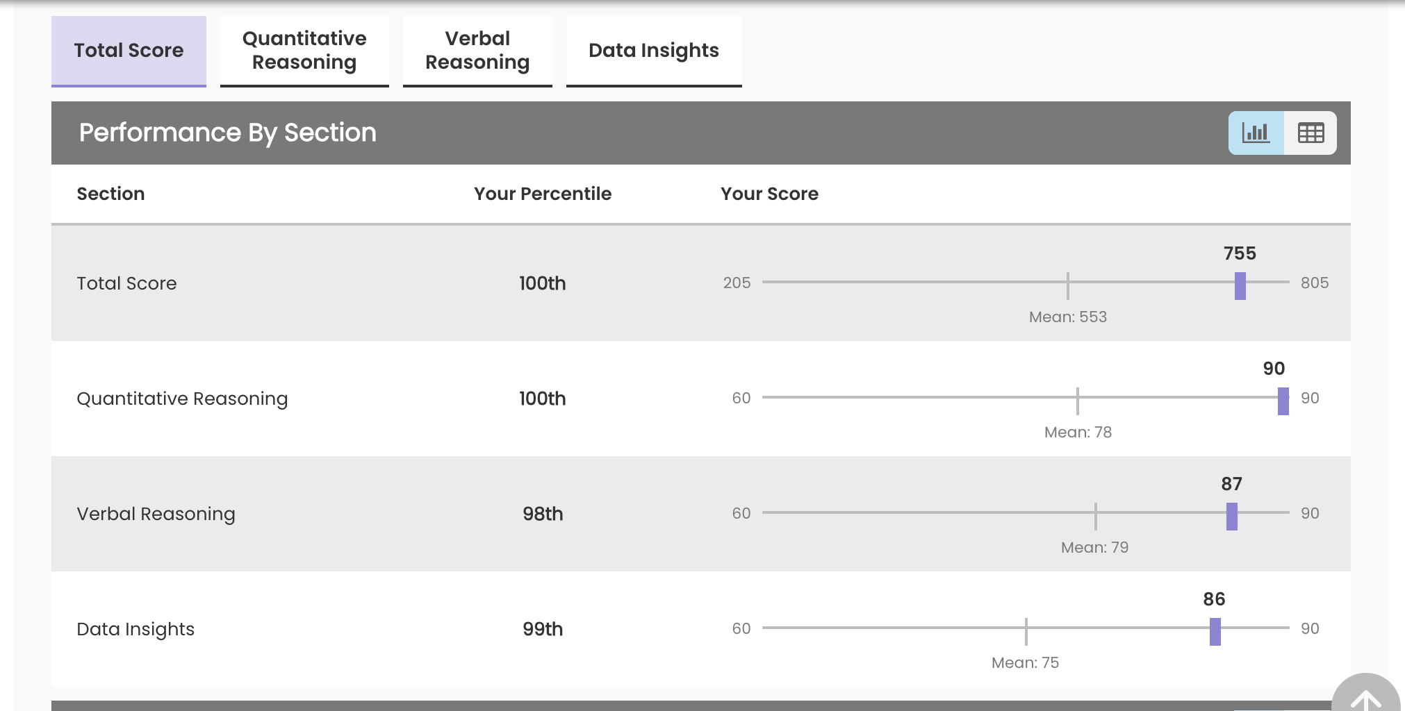 In my actual GMAT, this preparation proved invaluable. When faced with complex tables or TPA passages in DI, I could approach them confidently using the skills I'd developed. The focus on building strong fundamentals before diving into DI practice helped me improve to D82.