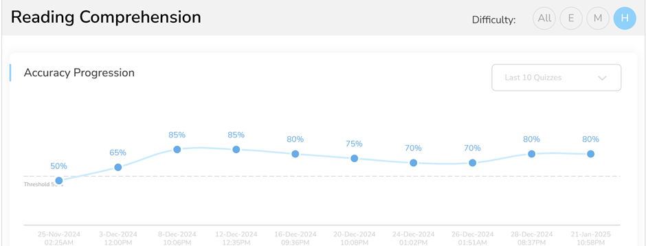 Conquering the Verbal ChallengeEven though my starting Verbal score on Focus Edition was 80, I wasn't confident about my verbal abilities. Having struggled with reading throughout my academic life, I knew I needed a strong foundation to maintain consistent performance.