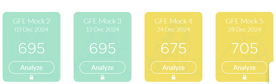 Mock Test JourneyThe mock test phase was a crucial part of my preparation. After completing my sectional preparation, I focused on full-length mocks to build stamina and test readiness. Here's how my mock scores progressed: