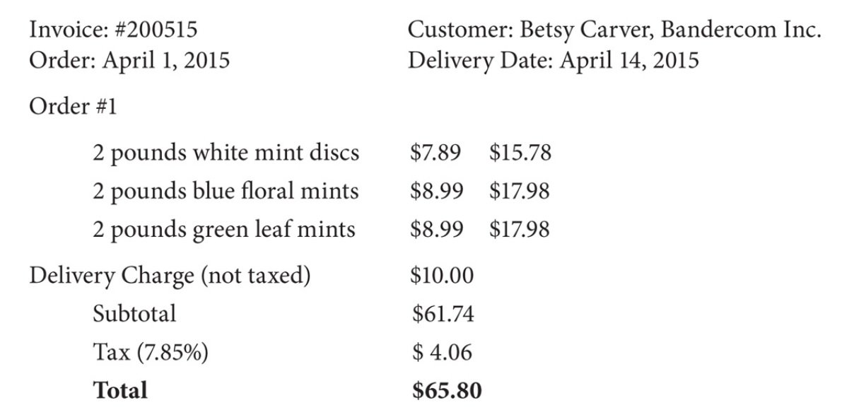 | The average price per pound of the mints including tax and delivery is $10.29. | ||