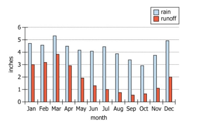 As compared with the previous month, the only month with a greater average amount of rain and a lesser average amount of runoff is__________, when the average amount of rain exceeds the average amount of runoff by approximately____________inches.We need to check the difference between