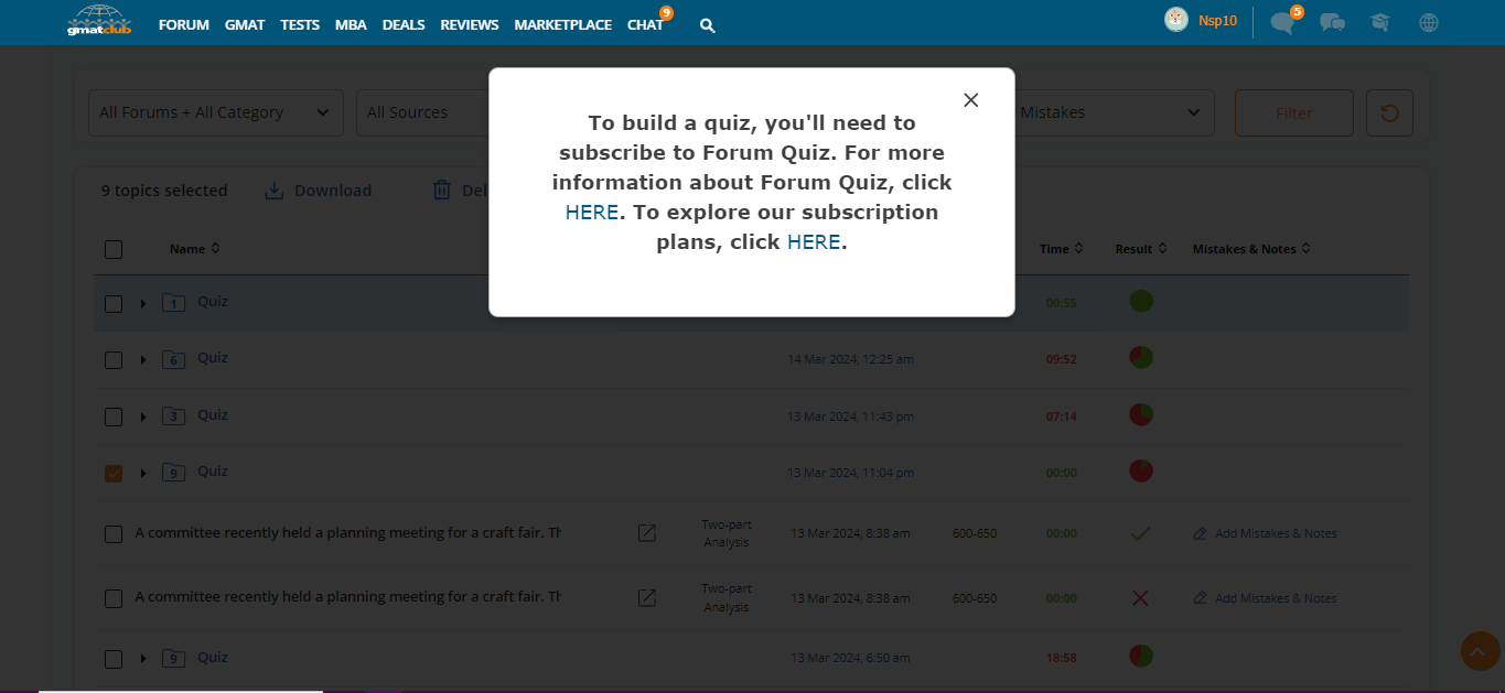 Forum Quiz Mode is now available for all of the DI, PS, CR, RC, MSR, TPA, and G&T Questions on GMAT Club (SC is also available for EA). Visit the
