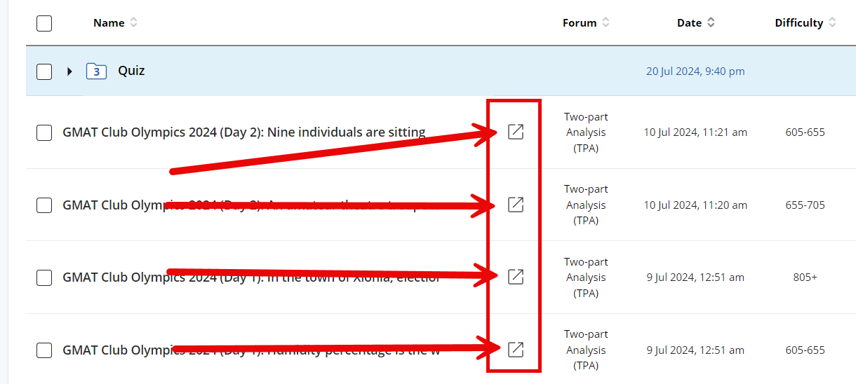 Forum Quiz Mode is now available for all of the DI, PS, CR, RC, MSR, TPA, and G&T Questions on GMAT Club (SC is also available for EA). Visit the