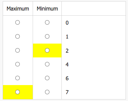Select the maximum and minimum number of marbles that any of the friends can have after exactly three trades are made. A trade involves two people exchanging any number of marbles according to the rules. Make only two selections, one in each column.