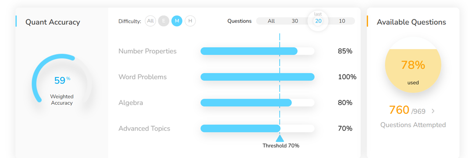 By test day, I was consistently hitting 75-80% accuracy on hard Verbal questions in my practice sessions.