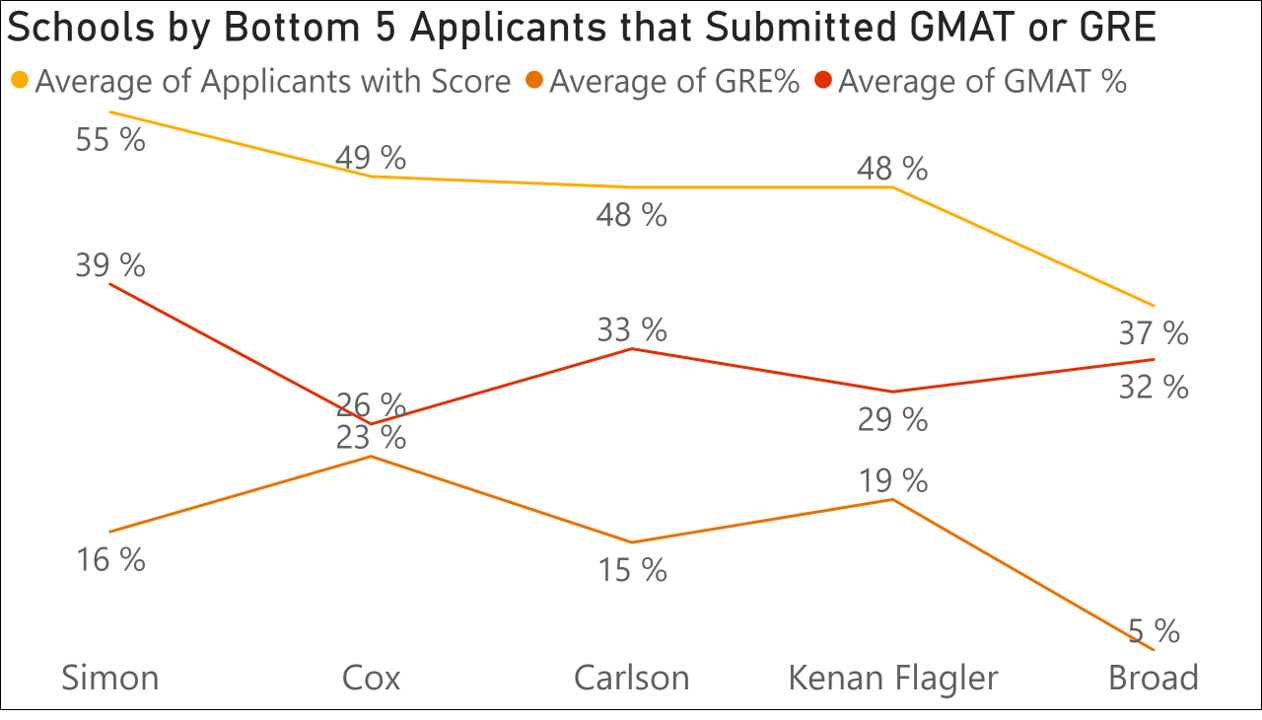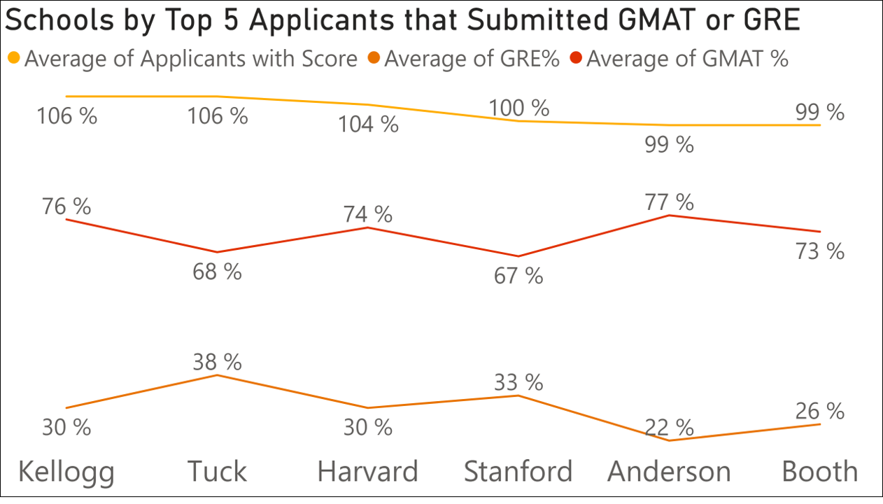 % of Applicants that Submitted GMAT/GRE: This measures the proportion of applicants who submitted their GMAT or GRE scores.