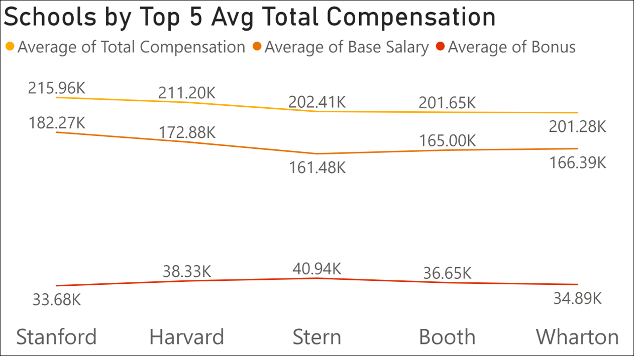 Average Compensation: Comprising the base salary and bonus, this figure reflects the average remuneration earned post-MBA.