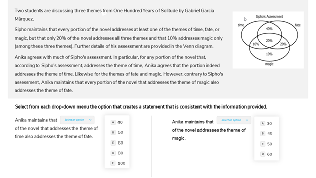 Faltering Point: In this question, failure to translate the scenario presented in the dataset about Anika’s take on the themes into the new Venn diagram for Anika will result in you remaining clueless about answering the question asked.
