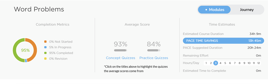 The diagnostic quizzes before each submodule helped me identify where I was already strong. The PACE engine recommended which topics I could skip and which needed focus. In Number Properties, for instance, I scored 100% on both diagnostic quizzes and skipped most of the foundational content.