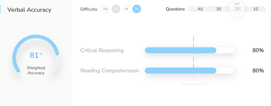 One thing that reduced test-day anxiety significantly: the hard RC passages on Scholaranium matched the difficulty I saw on the actual test. Walking into the exam, I thought, "I've done passages this hard before. I know how to handle this." That familiarity eliminated panic.