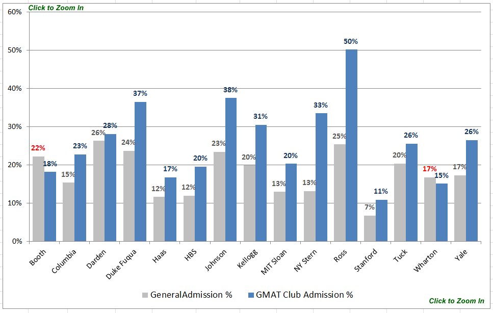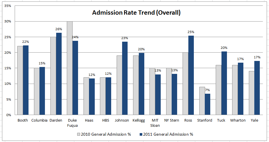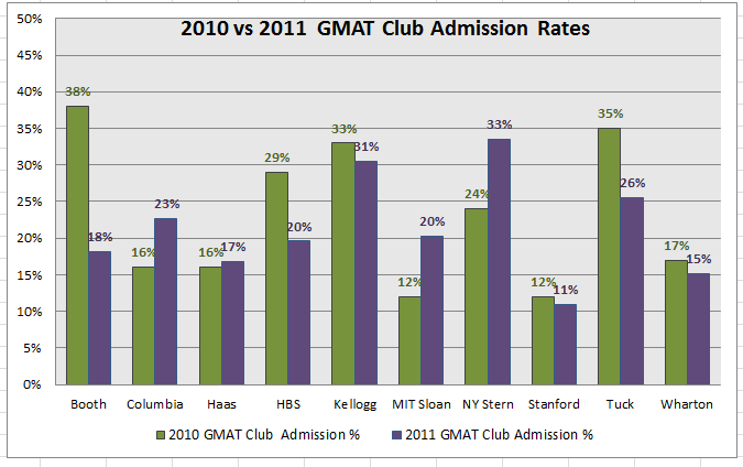 - NY Stern - application rate of GMAT Club members was 155% that of average (33% admitted vs. 13% average admission rate). Compare this to the 74% last year2011 vs 2010 Admission Rates