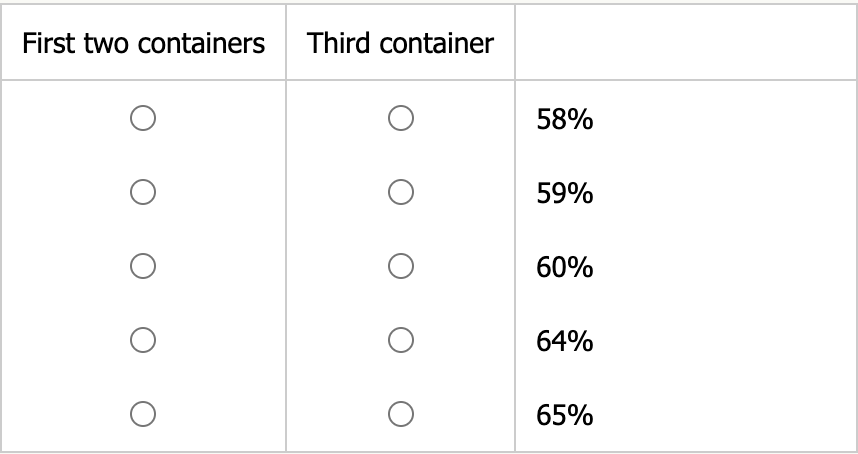 Third container that are jointly consistent with the given information. Make only two selections, one in each column.