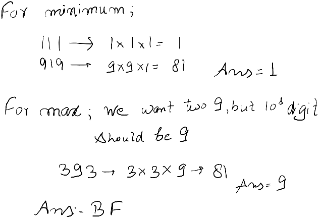 A palindrome is a number that reads the same when read from either end. For example, 12321 is a palindrome. A set consists of all the 3-digit palindromes whose product of digits has 1 as the unit digit. Select for Minimum the minimum possible value of the tens digit of any of the numbers in the set, and select for Maximum the maximum possible value of the tens digit of any of the numbers in the set. Make only two selections, one in each column.