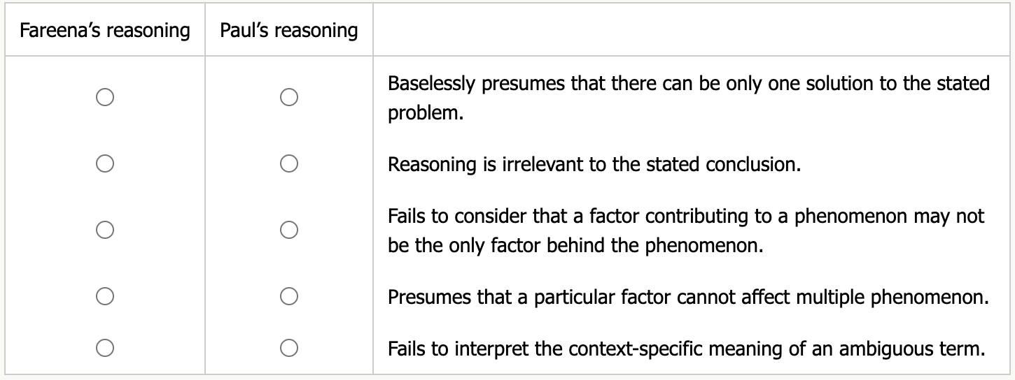 Explanation: This is not the 'most' serious flaw in either of Fareena or Paul's reasoning.