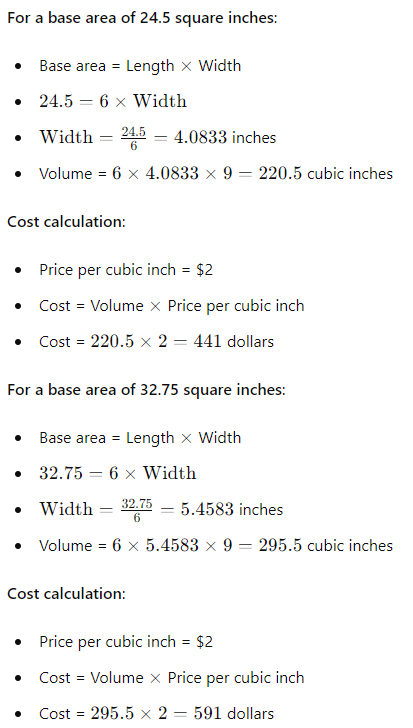 Volume of 24.5 square inches: 24,5 x 9 = 220,5