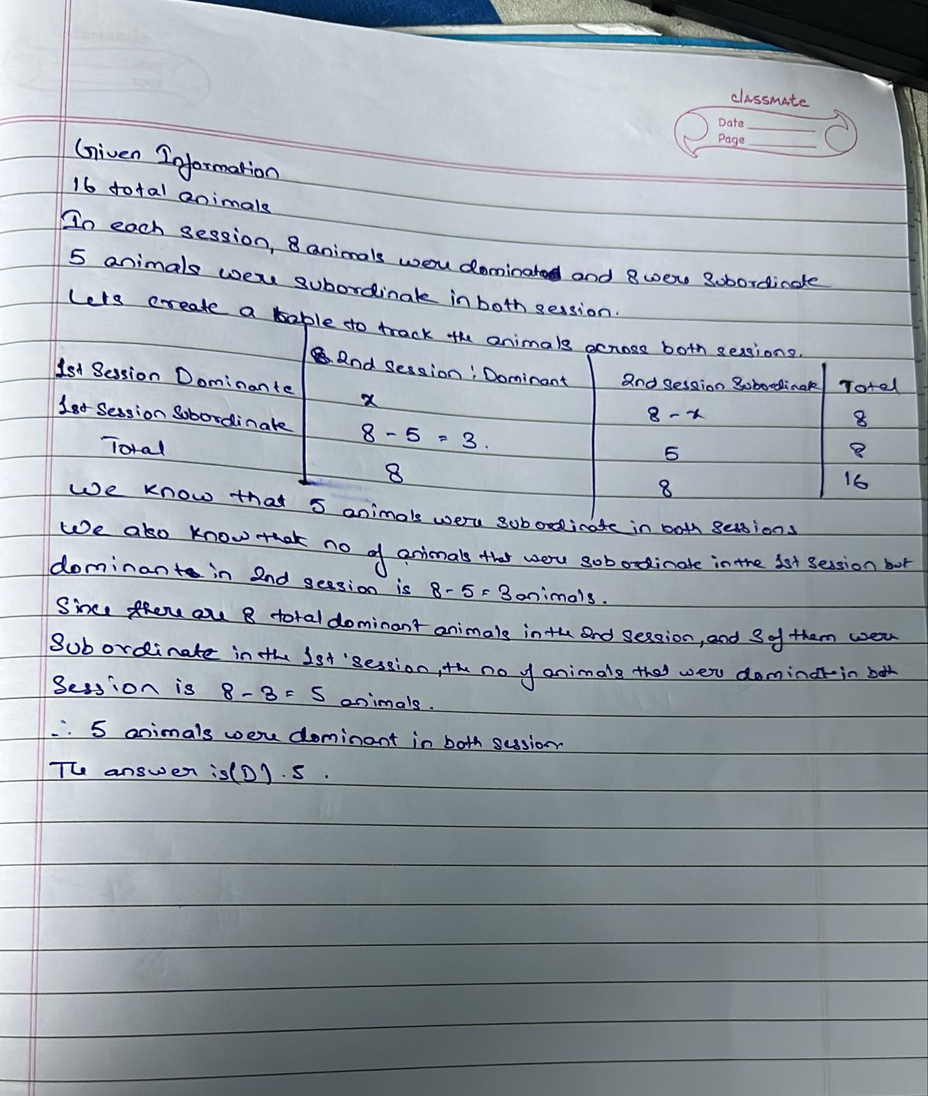 | 2nd session | Dominant | 5 | 3 | 8 |