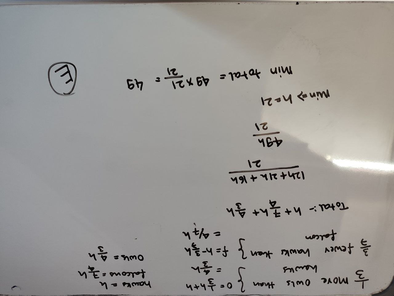 A wildlife center houses 1/3 more owls than hawks, and 3/7 fewer hawks than falcons. If the center has at least one of each bird". Then asks us the minimum possible total number of falcons, hawks, and owls.So as per the question, Owl = (1+1/3)Hawks => Owl = (4/3)Hawks,Hawks = (1-3/7)Falcons => Hawks = (4/7)Falcons=>From the above information we can conclude that, Owl = (4/3)Hawks => Owl = (4/3)*(4/7)Falcons => Owl = (16/21)FalconsNow we need to find the minimum possible value of all the available birds:=>Owl + Hawk + Falcon=>(16/21)Falcon + (4/7)Falcon + Falcon=>(28/21)Falcon + Falcon