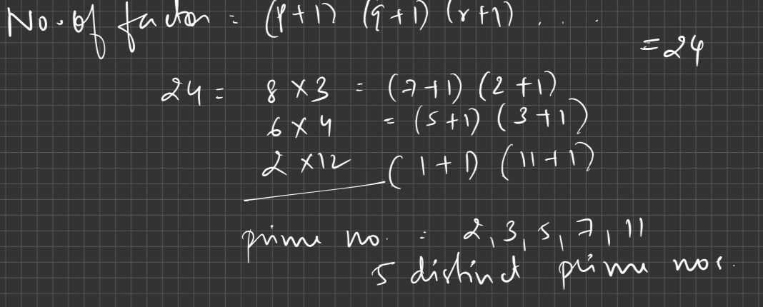 N = p1^(a1+1)*p2(a2+1)...pk^ak has 24 positive factors where p1 and p2 are distinct prime numbers.
