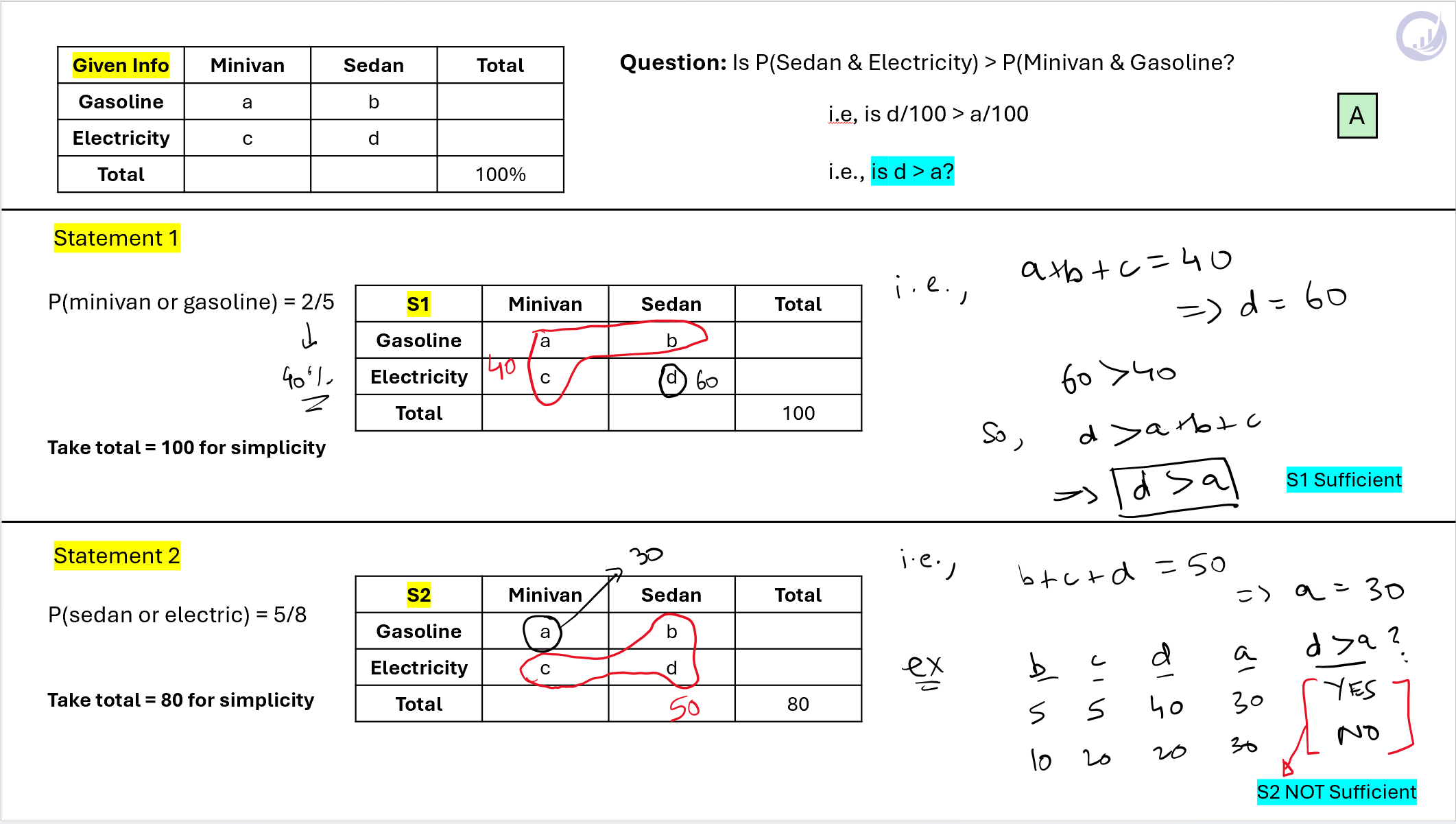 If P(S and E) = 4/8, then 4/8 > 3/8 (Yes)