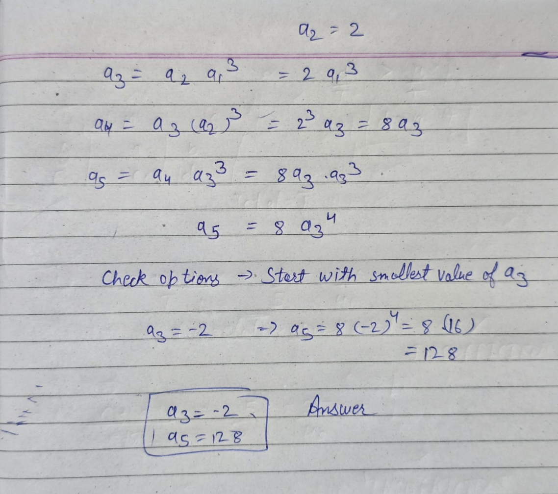 Therefore, the correct value for a_3 is -2 and for a_5 is 128.