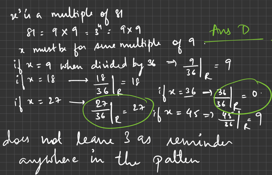 We need to find which of the given remainders (0, 3, 27) are possible when x is divided by 36.
